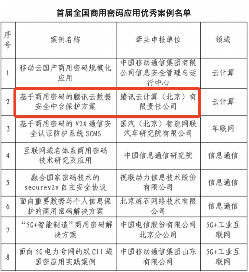 近日,工业和信息化部密码应用研究中心发起的“首届全国商用密码应用优秀案例”评选活动正式结束,腾讯云数据安全中台保护方案凭借优异技术和实践表现获评优秀案例。