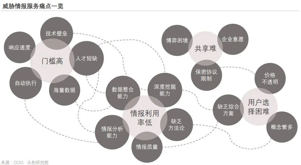 然而,当前中国威胁情报服务存在门槛高、共享难、用户选择困难、情报利用率低等痛点。另外,由于不同行业用户对于威胁情报的需求不完全相同,所以针对不同应用场景的更具细粒度的威胁情报服务及一站式情报服务方案仍存在较大的市场缺口。