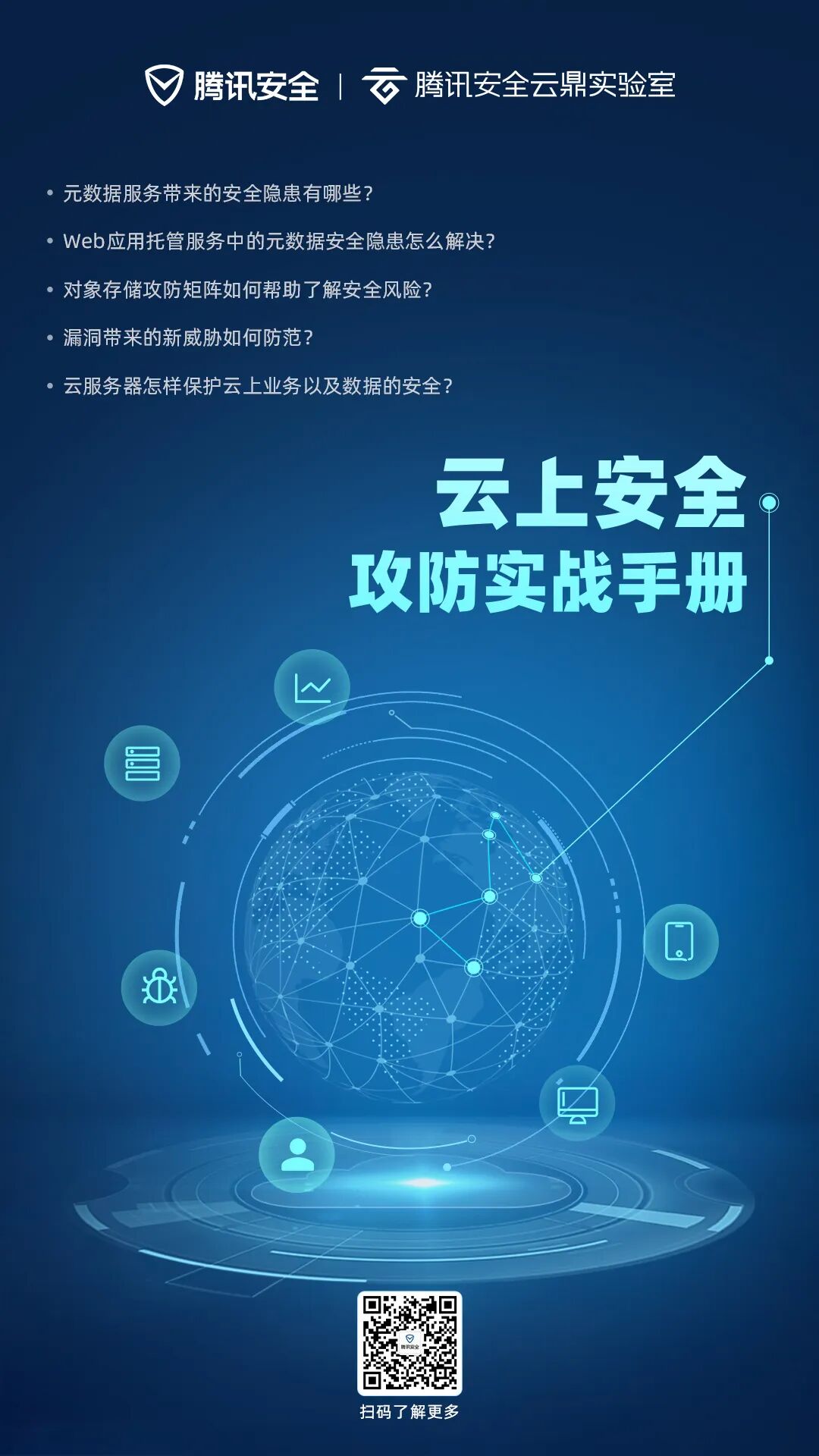 扫描下方二维码关注腾讯安全公众号,回复关键词“云上攻防”下载《云上安全攻防实战手册》全文。