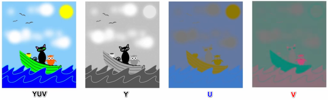不难发现,即使没有 U、V 分量,仅凭 Y 分量我们也能 “识别” 出一幅图像的基本内容,只不过此时呈现的是一张黑白图像。而 U、V 分量为这些基本内容赋予了色彩,黑白图像演变为了彩色图像。这听起来是否有些似曾相识呢?这其实也是黑白电视和彩色电视之间的关系。